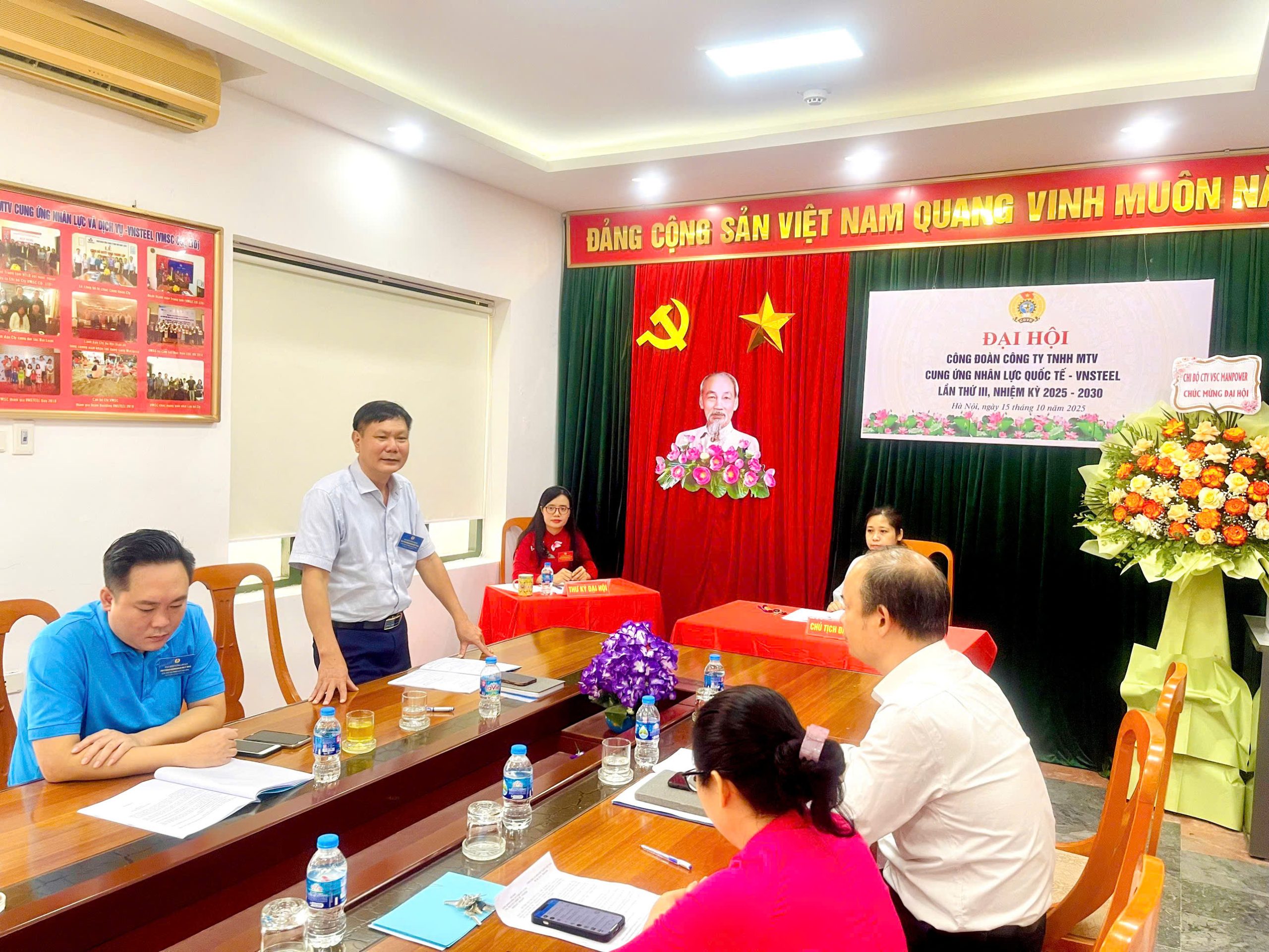 Đại hội đại biểu Công đoàn Công ty TNHH MTV Cung ứng nhân lực quốc tế – VNSTEEL lần thứ III nhiệm kỳ 2025 – 2030 đã thông qua Báo cáo chính trị của Ban Chấp hành Công đoàn Công ty khóa II, nhiệm kỳ 2023 – 2028 và kiểm điểm đánh giá việc thực hiện nhiệm vụ mà Nghị quyết Đại hội đại biểu Công đoàn Công ty lần thứ II đã đề ra, đồng thời chỉ rõ những tồn tại hạn chế, tổng kết đúc rút kinh nghiệm, đưa ra những bài học kinh nghiệm làm cơ sở vững chắc cho việc xây dựng và quyết định phương hướng nhiệm vụ của nhiệm kỳ mới.